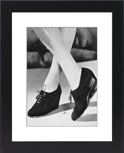 - This 14x11 Framed Print features an image chosen by Mary Evans. Estimated image size 317x280mm.- Black Satin Frame White Digital Mat 14x11 wooden frame with digital mat and RA4 print. Finished back including brown backing paper, hanging bracket and corner bumpers- Image Description: An afternoon walking shoe from Fortnum and Mason in suede with a wedge sole composed of patent and suede sections shaped like slices of cake. The outbreak of war in 1939 saw the fashion for womens shoes put more emphasis on comfort and practicality. Shoes worn with Wolsey Klirsheer Twi-Twist silk stockings, available in seventeen lovely shades.- For any queries regarding this item please contact Mary Evans c/o Media Storehouse quoting Media Reference 4395761- � Mary Evans/National Magazines